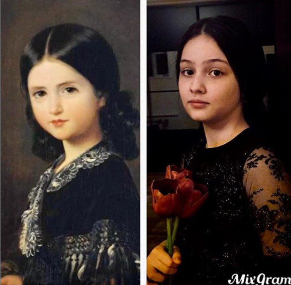 Фарида, ученица 4 "В" класса присоединилась к флешмобу #ИЗОляция и повторила подручными средствами картину автора: Федерико Медрасо, 18 век"Девочка с цветами" 🖼️🖌️🎨.