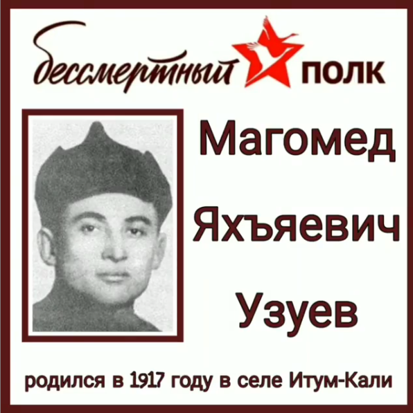 22 июня 1941 года вошел в историю нашей страны как день величайшей трагедии. На защиту Родины плечом к плечу встали представители самых разных национальностей и вероисповеданий Советского Союза. Пограничники совместно с расположенными в приграничье частями Красной Армии первыми приняли на себя удар подлого и вероломного врага.Каждая пядь земли стала крепостью, которой враг овладеть не смог, пока оставался жив хоть один ее защитник.Одним из ярчайших примеров проявления мужества и героизма стали защитники Брестской крепости, которые одними из первых вступили в бой против гитлеровских захватчиков.Среди защитников крепости геройски сражались представители разных национальностей, в том числе и уроженцы Чечено-Ингушской АССР, одним из них был уроженец села Итум-Кале, Герой Российской Федерации Узуев Магомед Яхъяевич.