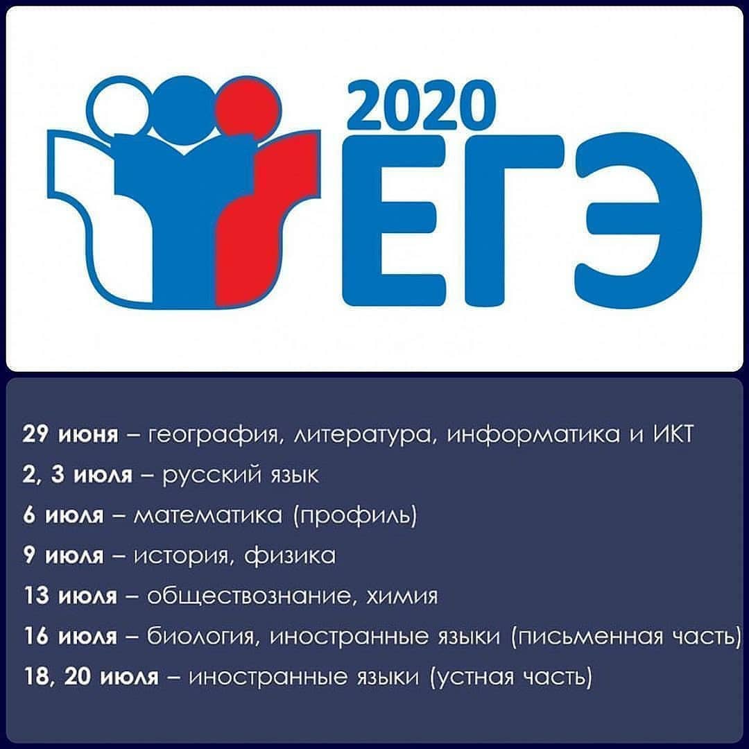 21.05.2020В указанные даты экзамены будут сдавать участники, зарегистрированные как на основной, так и на досрочный период. Напоминаем, ЕГЭ в этом году сдают только те, кто планирует поступать в вуз.⠀В расписании будут также предусмотрены резервные дни. О них мы сообщим позже.
