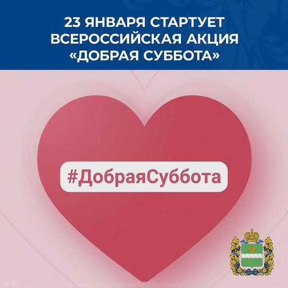 23.01.2021Сегодня стартовала Всероссийская акция «Добрая суббота». Инициаторами акции выступили участники «Большой перемены», они предложили всем школьникам и их родителям начать новый год с добрых дел и полезных привычек.
