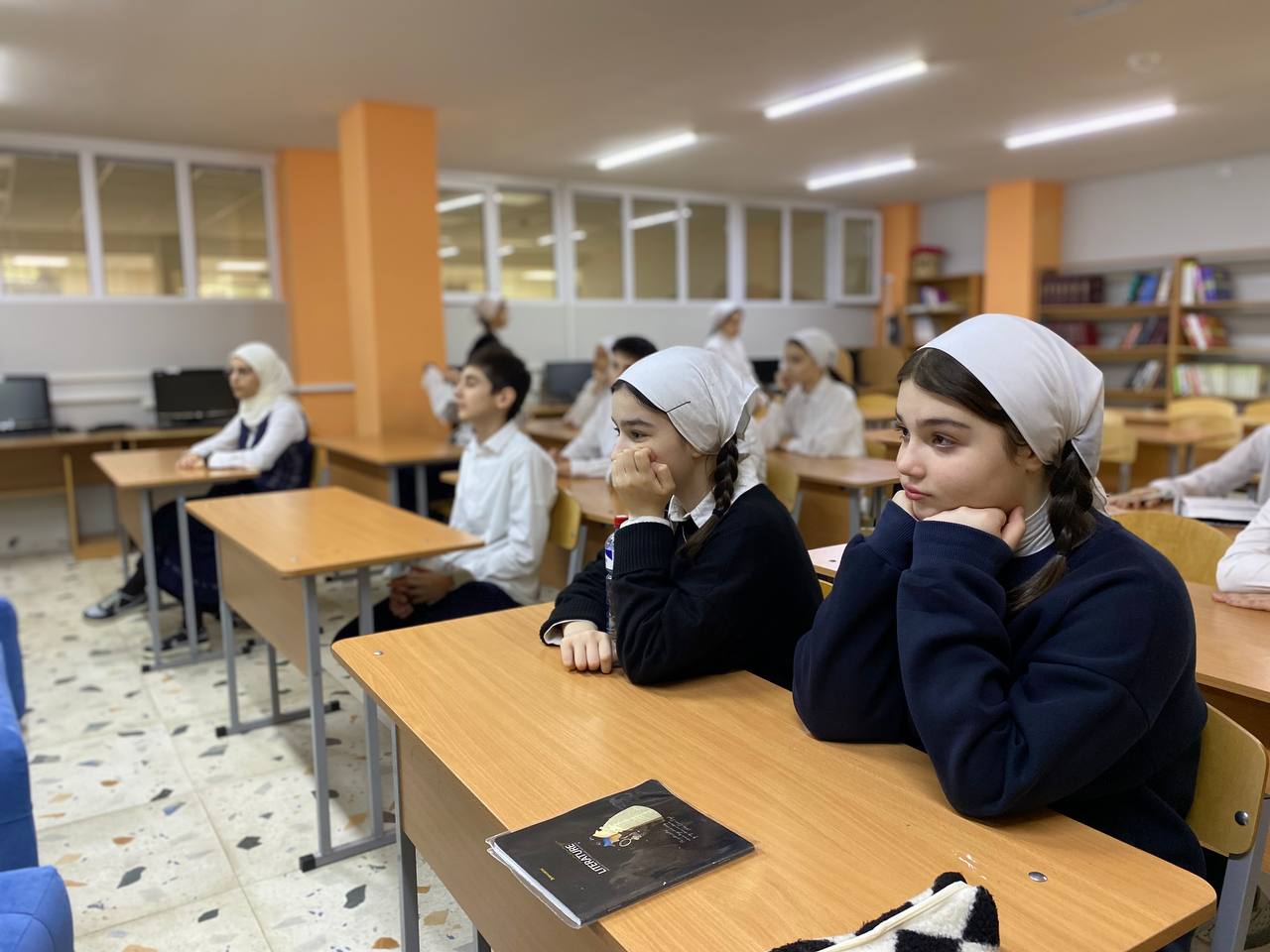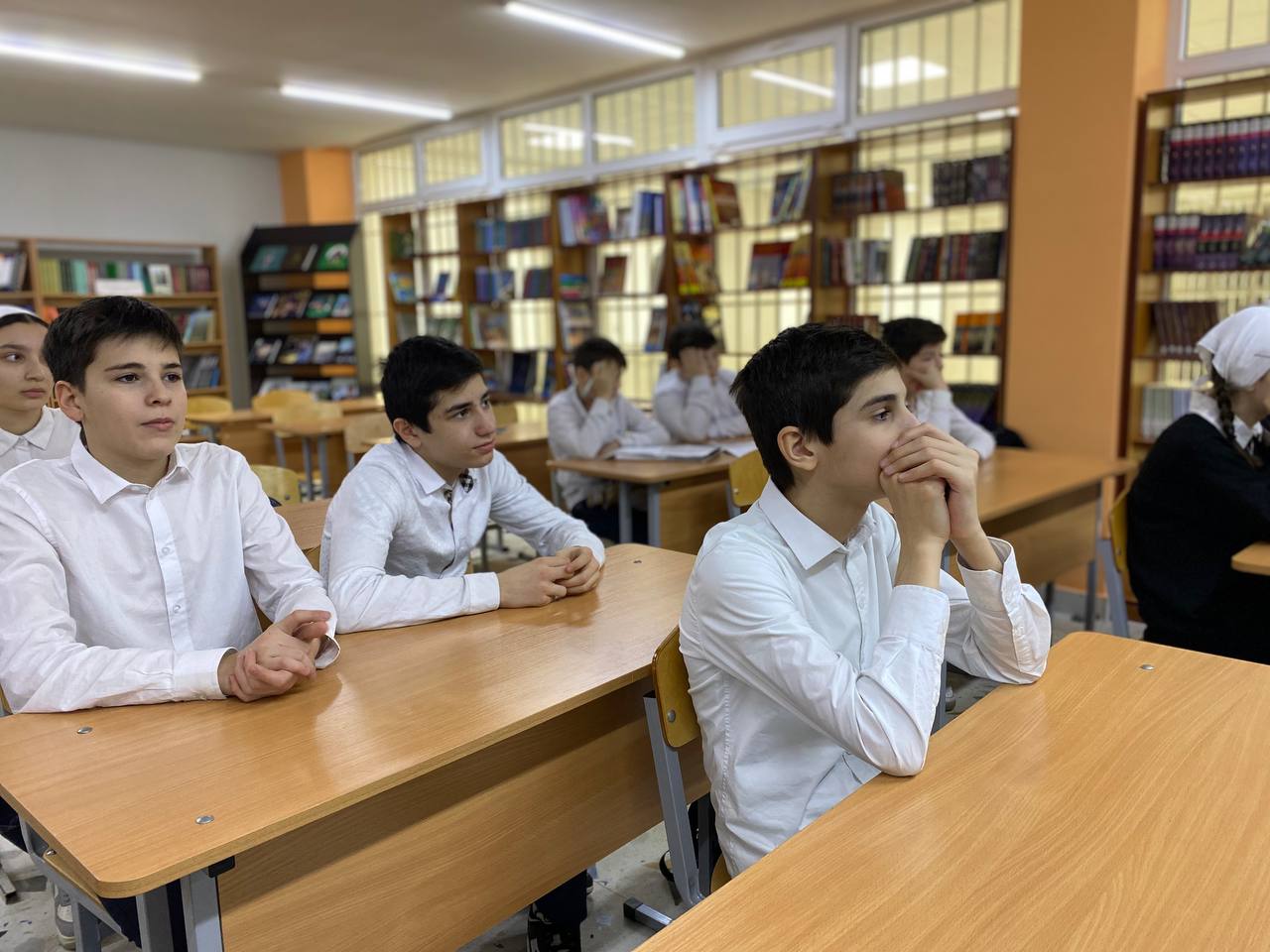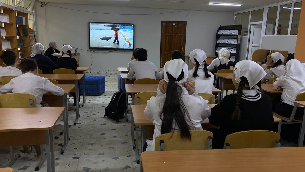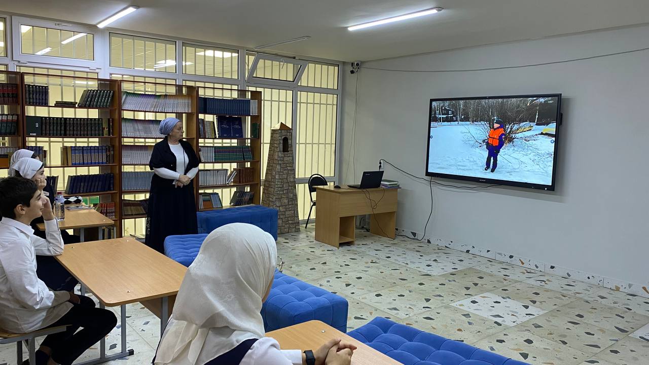 21.12.2023Во исполнение Распоряжения Мэрии г. Грозный от 29.11. 2023 г. № 4676 об обеспечении безопасности людей на водных объектах города Грозного в зимний период 2023-2024 годов, в читальном зале ШИБЦ Президентского лицея с обучающимися 7 «А» класса проведена беседа.